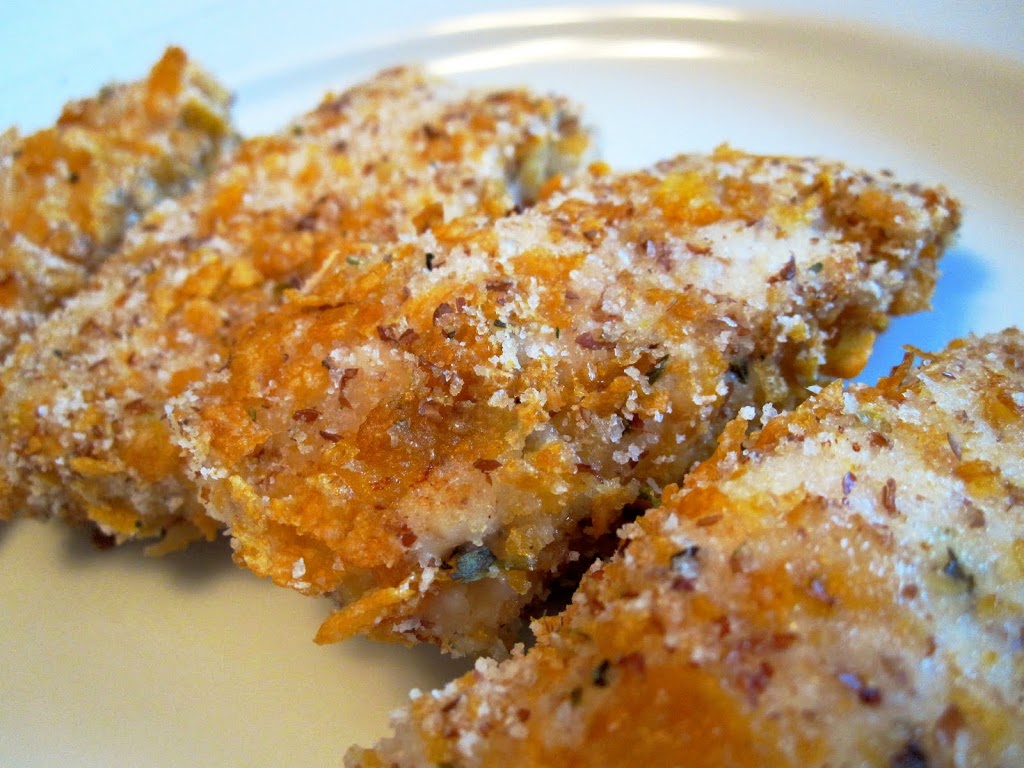 Combine corn flakes, breadcrumbs, flaxseed, garlic powder, oregano, and black pepper in large ziploc bag.