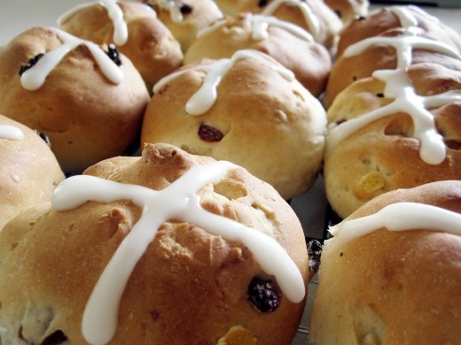 Once cool, mix 1/2 cup icing sugar with 1 tbsp of butter and 1 tbsp of milk. Place icing in a ziploc bag and cut a tiny hole in the corner. Squeeze icing onto buns to form a cross. Yum!