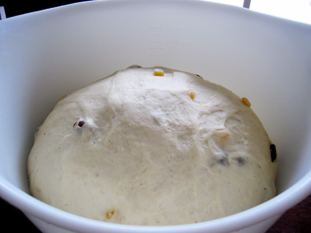 Place dough in a bowl. Cover with a clean tea cloth and set aside for one hour. ( I put it in the oven and turn the light on. This way it is out of draughts and the warmth of the light helps the rising process.)