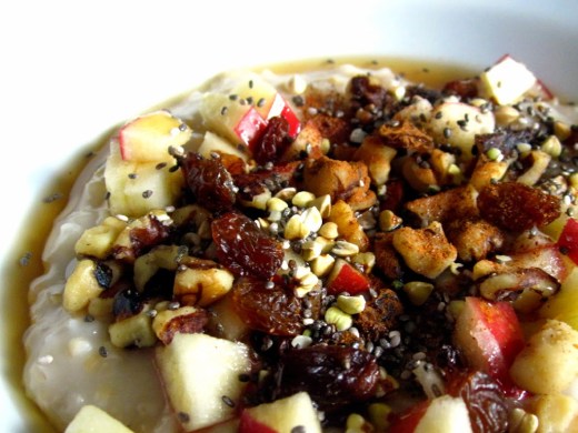 Put it in the crockpot the night before and in the morning you’ll have hot oatmeal ready for you to enjoy! Use an oven-safe bowl that will hold at least 4 cups of liquid and will fit inside your crockpot. Fill it with 1 cup of steel-cut oats and 4 cups of water. Put it in your crockpot and fill the crockpot with water until at the same level as the oats inside the bowl. Place lid on the crockpot and cook on low overnight. In the morning serve it with your favourite toppings. We like diced apples, Chia Goodness, cinnamon, maple syrup, walnuts and raisins.