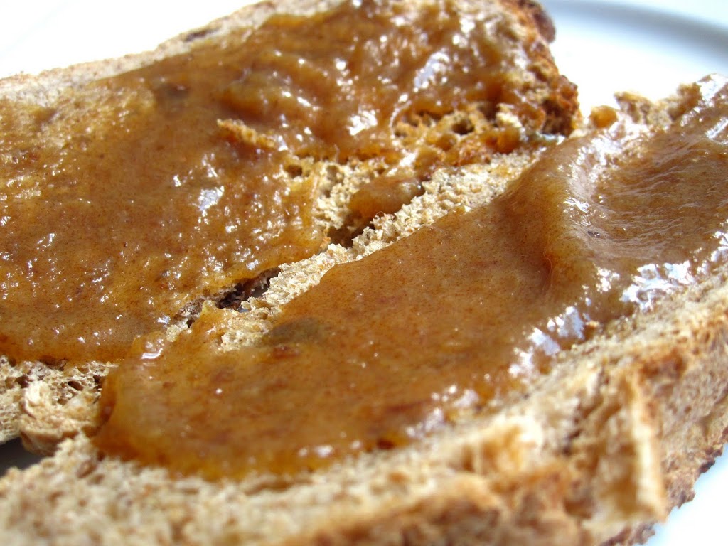 I love this stuff on cinnamon raisin bread (as pictured), and also on plain toast, yogurt, oatmeal, smoothies, combined with a little cocoa powder to make chocolate sauce, and as a substitute for sugar in baking, the same way you would use honey or maple syrup. It’s very versatile and easy to make, so give it a try!