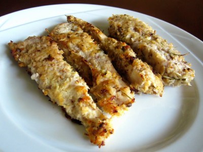Add a touch of class to your chicken fingers with walnuts, freshly grated parmesan cheese and rosemary.