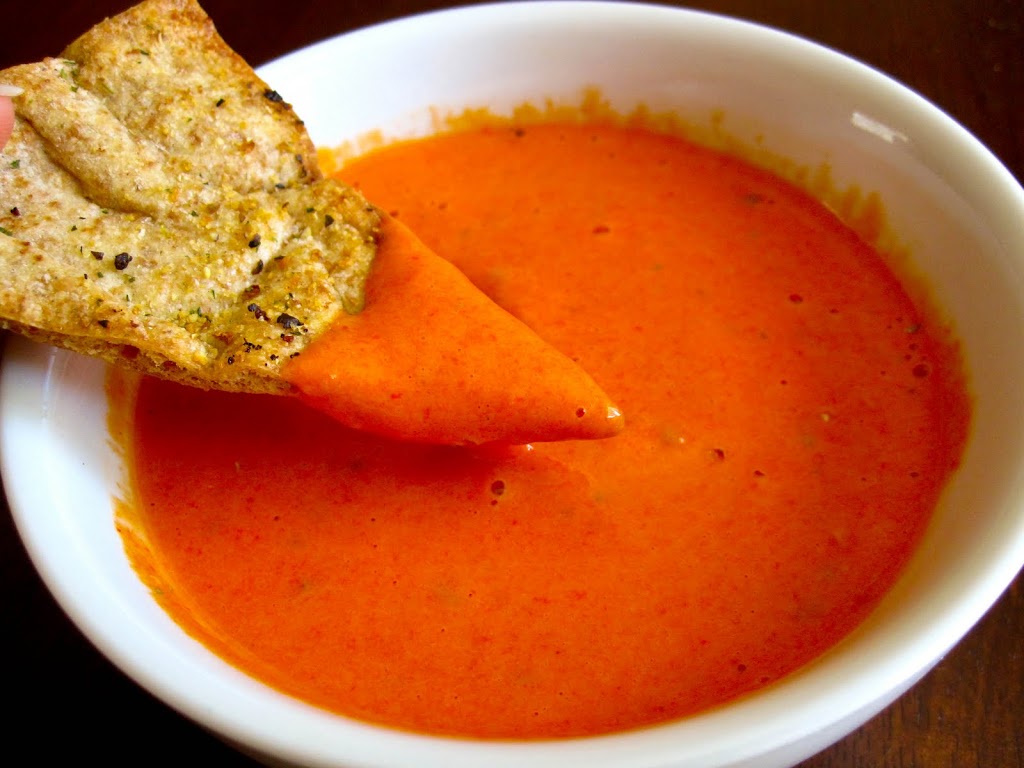 A vibrant and creamy dip made with roasted red peppers. It’s so good and so easy to make!