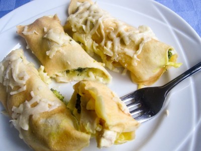 Soft and light crepes with a delicious creamy filling of chicken and broccoli.