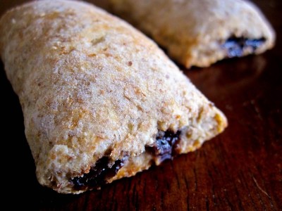 I made 2 versions of these tonight. Using 1 cup white four, 1 cup whole wheat flour, 2 tbsp whole flax seed, 2 tbsp ground oats, 1/4 cup raw sugar as my dry dough ingredients and coconut oil in place of butter. It was delicious! The 2 kinds were raspberry(fresh), cherry (jam), raisin (dried) and mango (fresh), pineapple (dried), applesauce, coconut. So mush tastier than the nutrigrain or kashi equivalent.