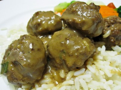 Thai-seasoned meatballs in a flavourful coconut peanut sauce.