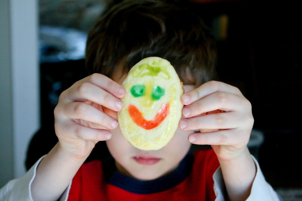 We’ll be away visiting my parents over Easter, so I wanted to make an Easter treat with the kids this weekend while I had time. These sugar cookies with egg-yolk paint were a simple and fun activity that we all enjoyed. Weekends are our time to have some fun and make a mess in the kitchen together.