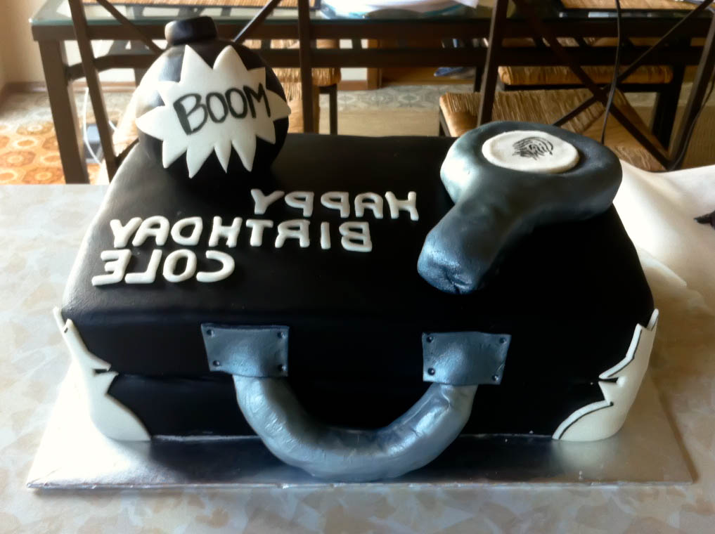 I also made sure the snacks were fairly healthy, because I knew the kids were going to get their fill of sugar from the cake. We had an amazing cake that was in the shape of a briefcase, with a magnifying glass and a bomb on top. The words were written backwards so it looked like it was in code.