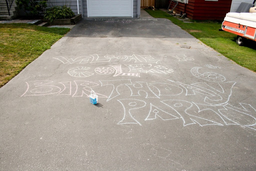 Our neighbour noticed the chalk drawings and said to Cole “So you’re having a birthday party today! Do you know how I know that? Because I’m a spy.” Cole was pleased that his suspicions were confirmed.