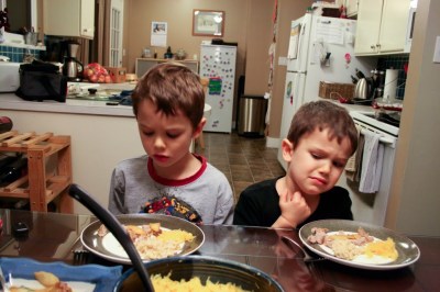 You’d think I was serving them worms from the way they’re looking at their plates with such abhorrence. Cole did eventually eat a little of everything, and Bennett ate the apples but that was it. It’s funny because he usually loves pork tenderloin, but not this night. At least Tony and I thought it was very good.