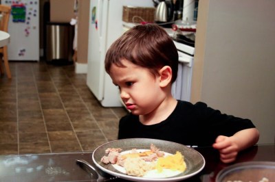 As I was putting this post together, I noticed I’ve already done a post about pork tenderloin and apples. In fact, I’ve done two of them already. I just love the combination of pork and apples apparently. This recipe is definitely the simplest of the three. It’s really quick but still fancy enough for a nice Sunday dinner. We enjoyed this one Sunday with side-dishes of spaghetti squash tossed with olive oil and parmesan cheese, and sesame rice. To make the rice I just sauteed it first with sesame oil, a handful of sesame seeds, a clove of garlic and a splash of soy sauce, then added water and simmered as usual. I was inspired by Tony’s friend, who made a similar sesame rice the last time he came to visit us. He loves to improvise in the kitchen like I do. When he comes over, he brings groceries and takes over my kitchen to make us dinner after our kids go to bed, and I’m happy to let him! Anyway, back to this meal. Bennett was in a mood on this particualr evening. He pouted and whined the entire time. It was actually kind of funny.