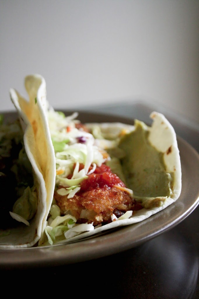 I put the meal plan on the fridge so everyone can see what’s on the menu for that day and I don’t have to cringe at that perpetual question: “what’s for dinner?” It also makes it easier for Tony to help get dinner started if I’m preoccupied with the baby. He does alright with cooking as long as he knows what he has to make and has a recipe for it. I’ve been trying to keep meals as simple as possible so that he can help out more. These fish tacos are definitely simple enough for him. We used frozen fish sticks as a shortcut and they worked great. Dinner was ready in 20 minutes and it was a big hit with everyone, even the boys. They loved being able to assemble their own tacos with their favourite fixings. There was no whining…except when the tacos were all gone!