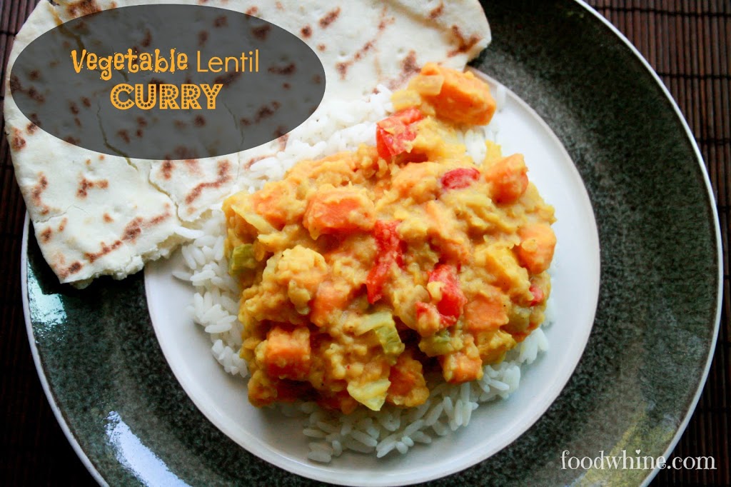 My kids are not spicy food fans, so I don’t put a lot of curry powder in it and I always use mild. You can feel free to adjust the spices to your preference. I used yams, onion, celery and red pepper because that’s what I had on hand, but you could use any vegetables you want. Try broccoli, cauliflower, potatoes, peas, or anything else that you want to use up. For protein I chose lentils, but you could try chickpeas, beans, shrimp, chicken, beef, etc. See how versatile it is? Just be aware that if you don’t choose lentils you’ll need to adjust the liquid accordingly. This recipe uses a lot of vegetable broth because lentils absorb the liquid as they cook. Personally, I really love lentils in curry. Lentil and Spinach Curry is another favourite of mine.