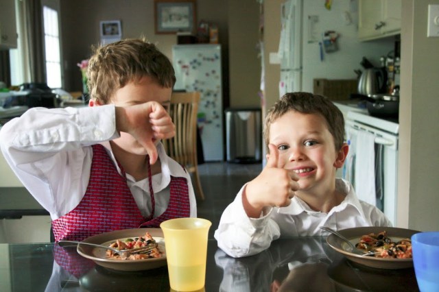 Cole is one tough nut to crack. As usual, he didn’t like this dinner. I’m not sure why exactly; he just wasn’t interested. Bennett is much more easy to please. He thought it was delicious and ate it up.