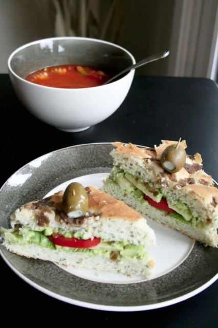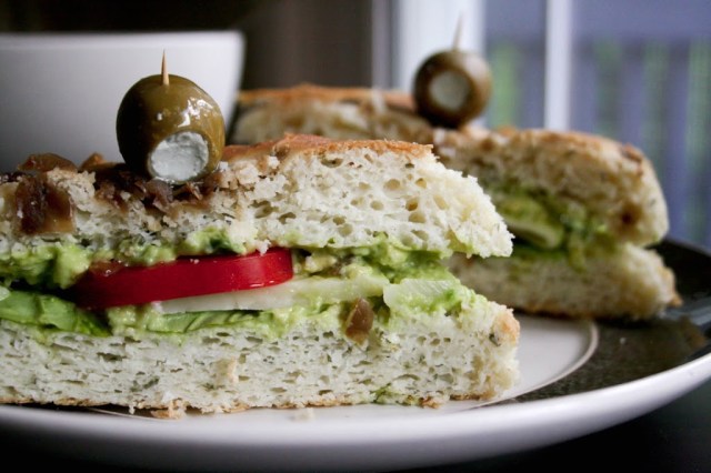 This one was not such a hit with my boys, but it had nothing to do with the focaccia. They just didn’t like what I did with the focaccia. Apparently avocado sandwiches are not as appealing to them as they are to me. Tony, who doesn’t like focaccia, actually enjoyed this more than I (or he) had expected. Although it was a bit crumbly and delicate, this focaccia had amazing flavour and was surprisingly moist.