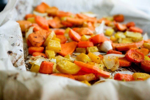 As much as I am an advocate for meal-planning, sometimes I like to pick out foods on a whim and challenge myself to make something creative with them. On this particular grocery shop, I decided to grab orange beets, because I’d never seen orange beets before, and an eggplant, because I hadn’t cooked with eggplant in ages. The beets and eggplant sat for a while in my refrigerator until I had an idea to roast them up for soup.