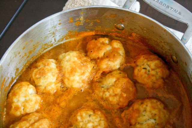 Tony seemed puzzled by this meal. I told him it was soup, but I guess the dumplings threw him off. He kept asking me things like, “Do I use bowls?” and “What about spoons?”