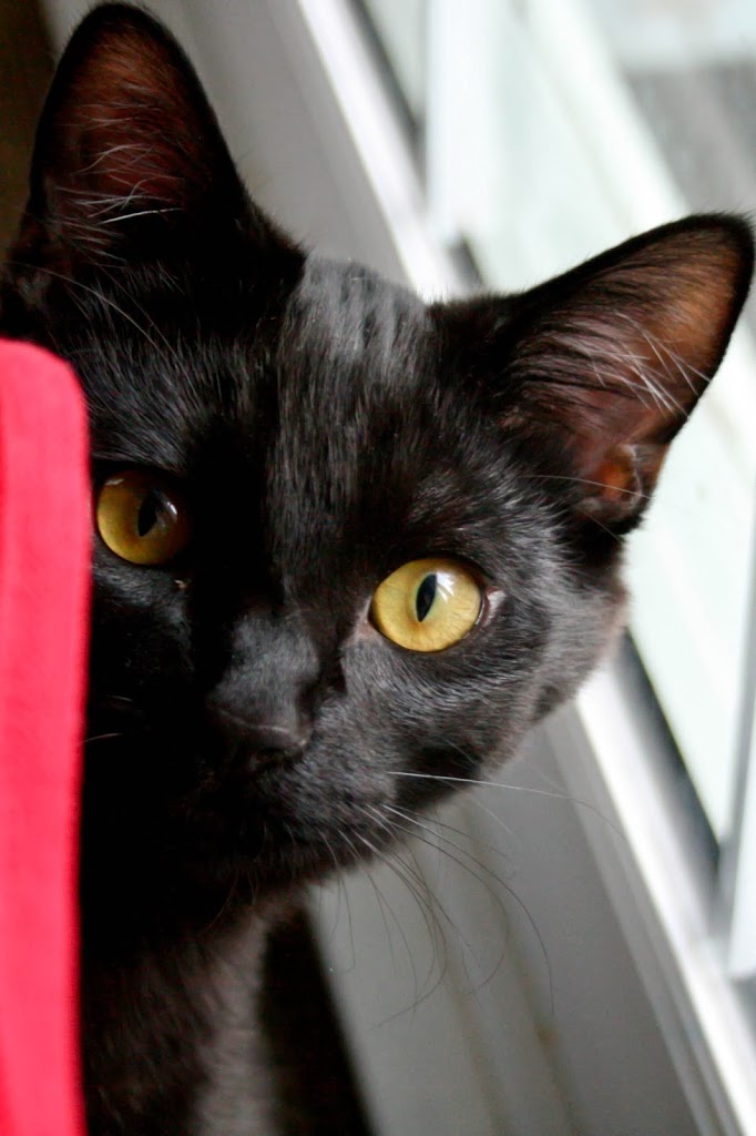 Our kitten, Hunter, was very curious about the squares while I was trying to photograph them. He kept photo-bombing my pictures. He also liked to sit under Ayla’s high chair and try to steal a few pieces that she dropped. That’s his favourite place to be lately. If he’s not under her chair, he’s on the dining room table.