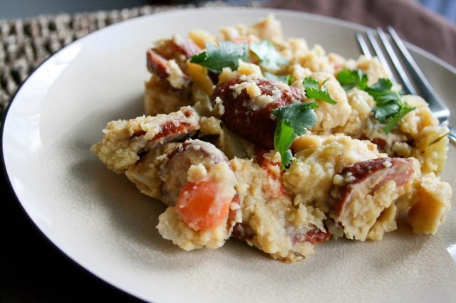 This recipe reminds me of one of the very first recipes I posted on this blog over 4 years ago, Turkey Kielbasa and Lentil Stew. That one was a crockpot recipe, while this new version is a quick weeknight recipe you can make on your stovetop.