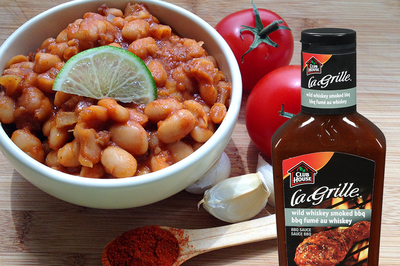 Baked beans are great with barbecued food. When the inspiration hits, I want beans that are quick and delicious. The recipe is fast and easy, and can be cooked outside on a BBQ burner. For the delicious part, La Grille Wild Whiskey BBQ Sauce provides that.