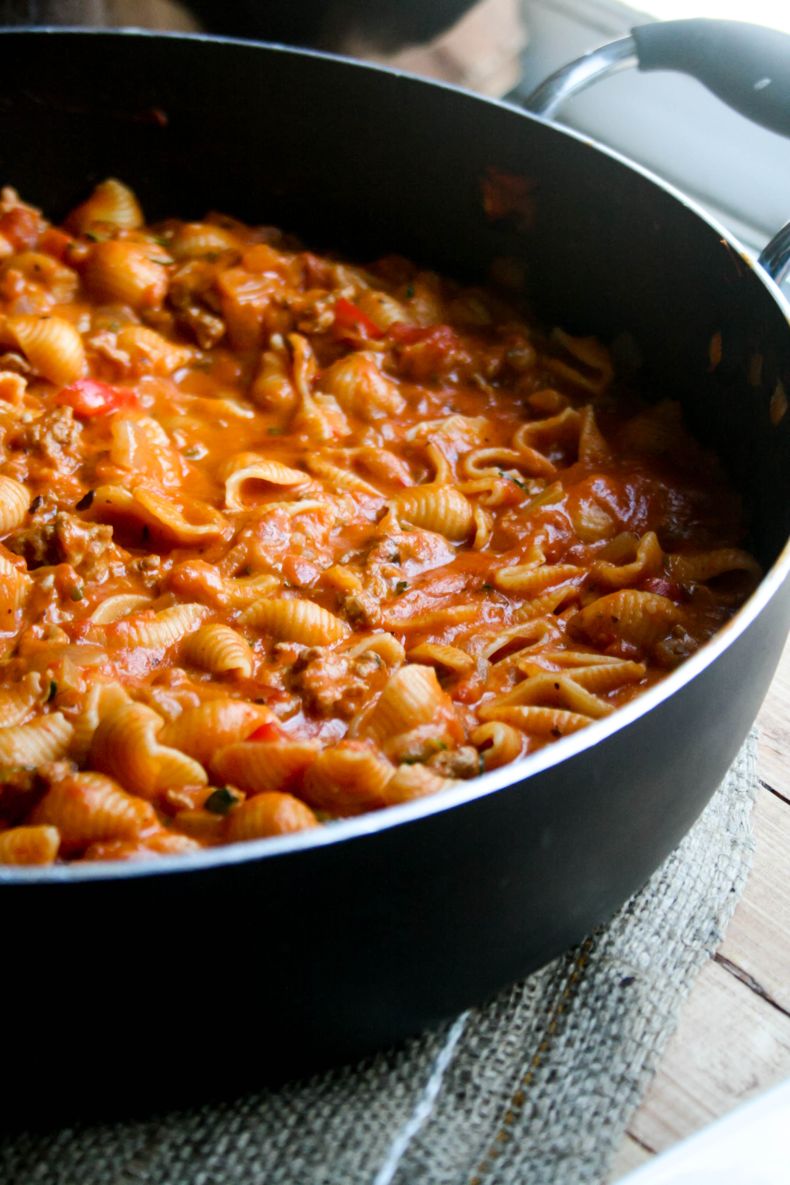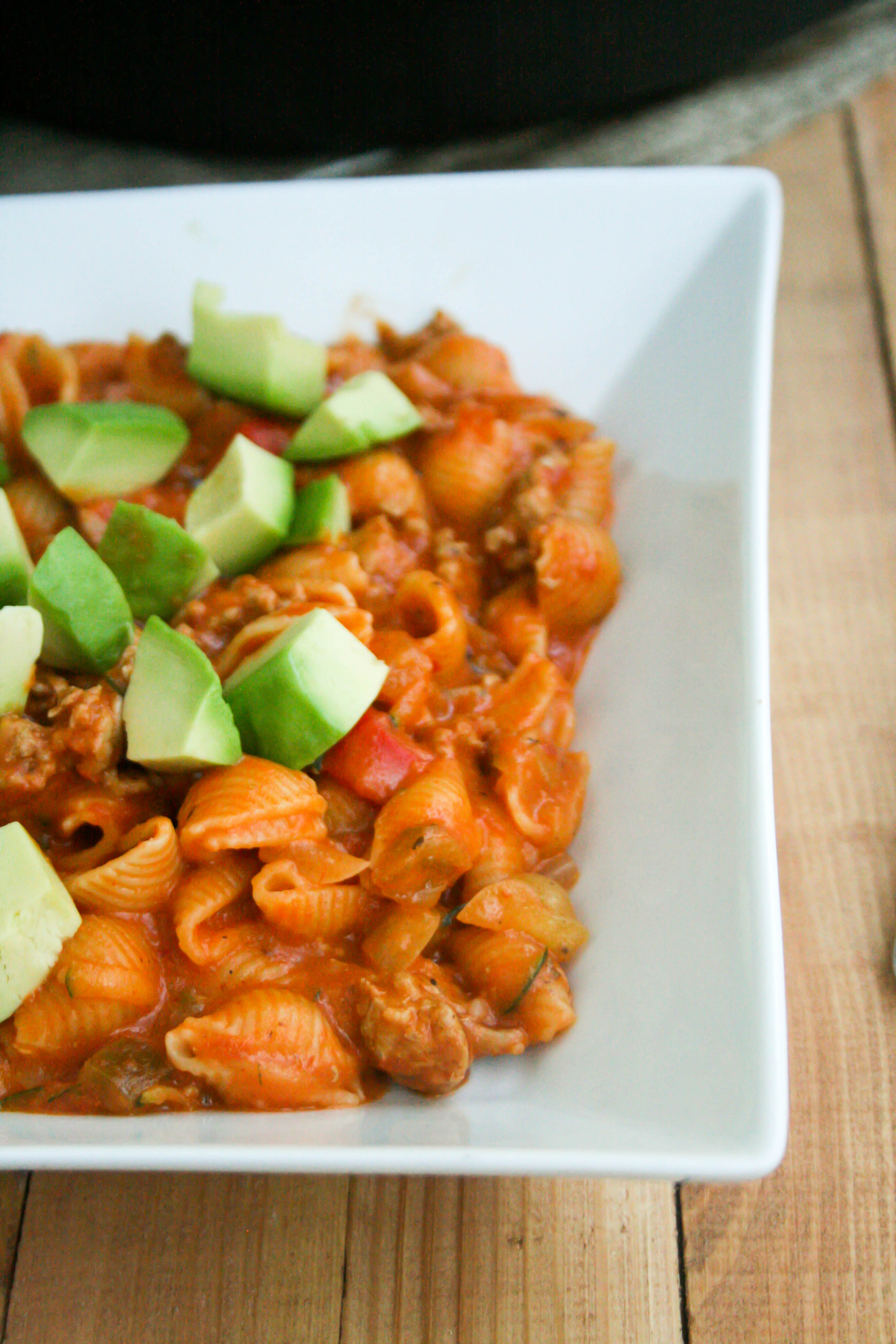 This is a great weeknight one-pot meal. It’s easy to make, and with turkey and shredded zucchini, it’s a really healthy dinner. The kids didn’t even notice the zucchini was in there.