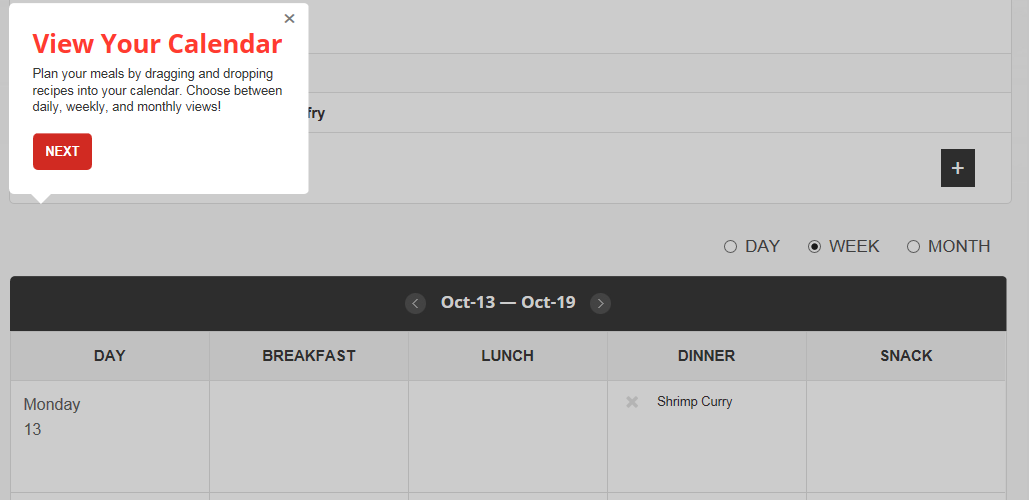 When you click on MENU PLANNER, you’ll see the recipes you selected on your shopping list. You can drag and drop these recipes into your calendar to create your menu plan for the day, week, or month.