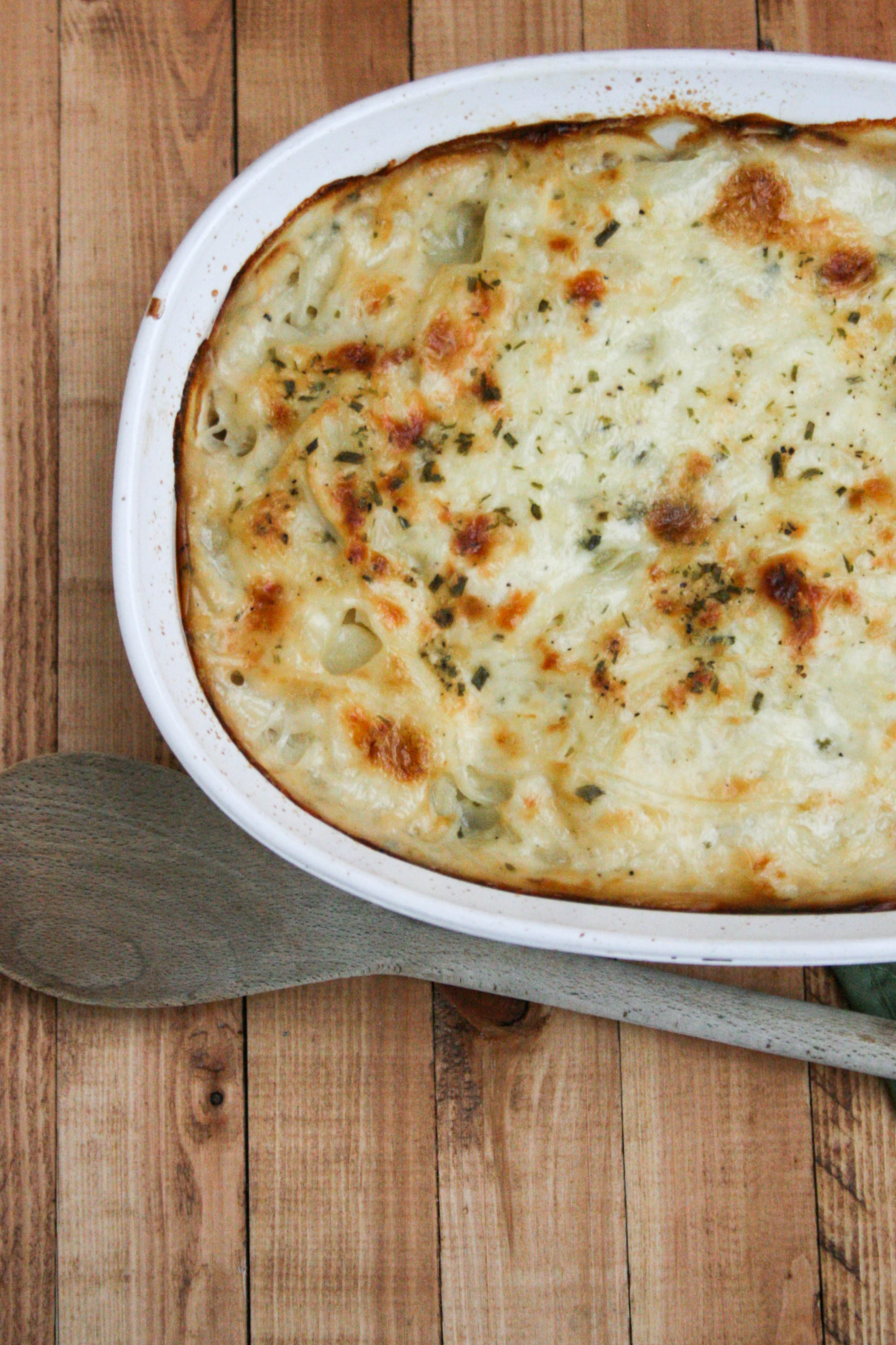 Heat oven to 350F. Grease bottom and sides of a 2-quart casserole. Melt 3 tsp butter in a saucepan over medium heat. Cook onion and garlic in butter for about 2 minutes until tender. Stir in flour, seasoning salt, and mustard. Cook, stirring constantly, until smooth and bubbly, then remove from heat.