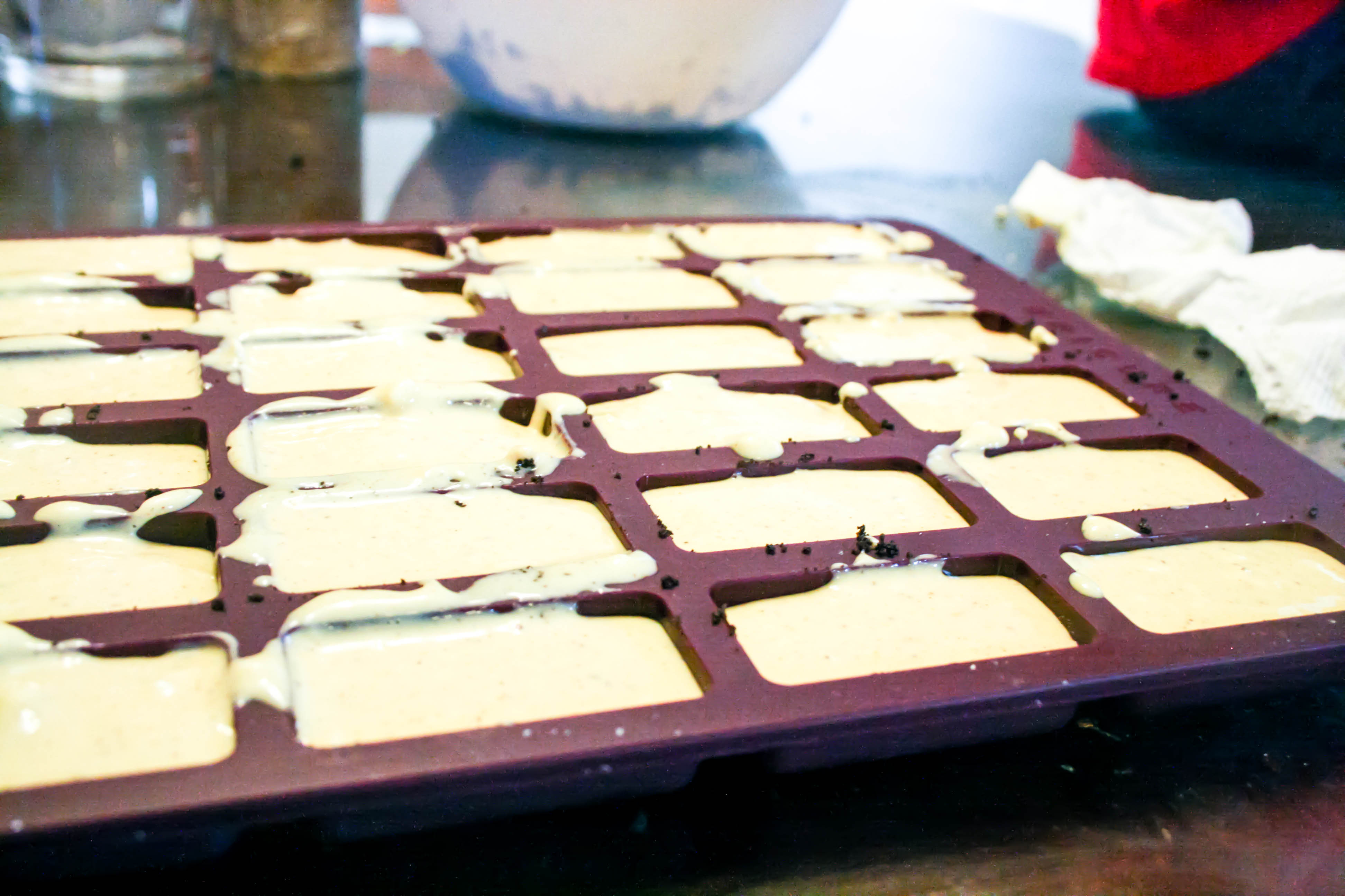 Be prepared for messiness: You have to expect that it’s going to be messy and just let it go. Prepare for it as best you can by putting out a washable tablecloth or newspaper first. Cover the floor with something, too, if you have carpets. I learned this the hard way when Bennett dribbled huge globs of cheesecake batter onto the carpet. I admit, there may have been some yelling on my part when that happened.