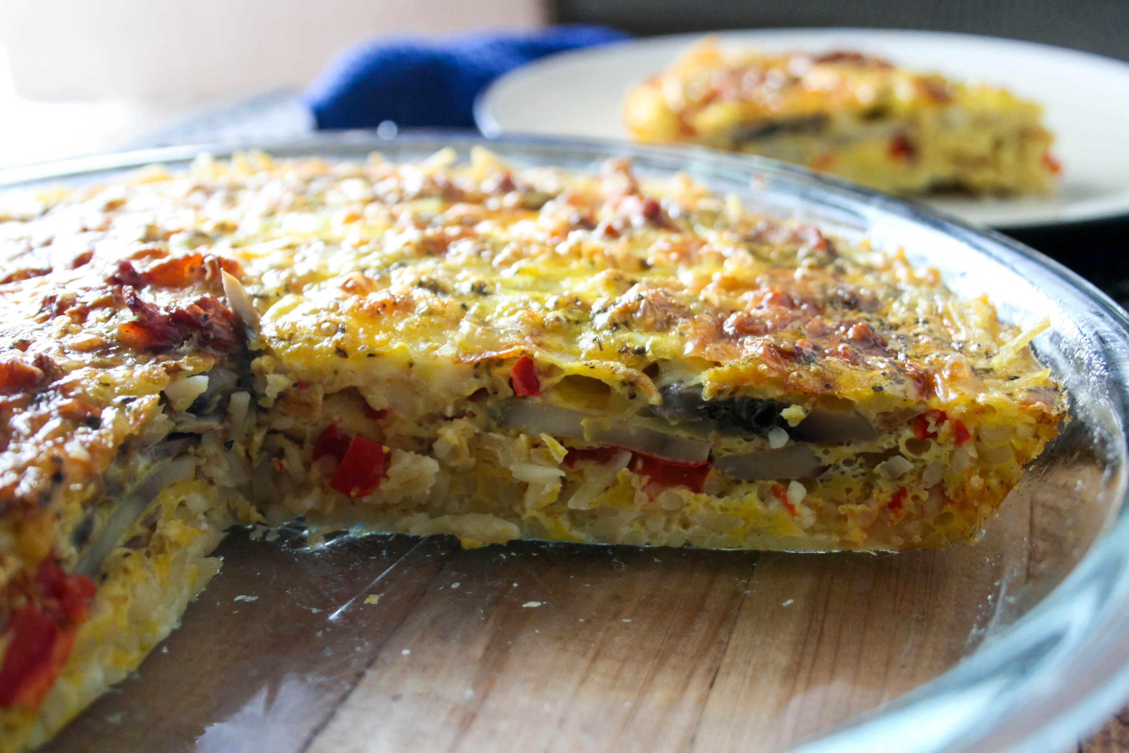 - In a bowl, whisk together eggs, salt, oregano and basil. Pour the egg mixture evenly over the other ingredients in the pie plate.